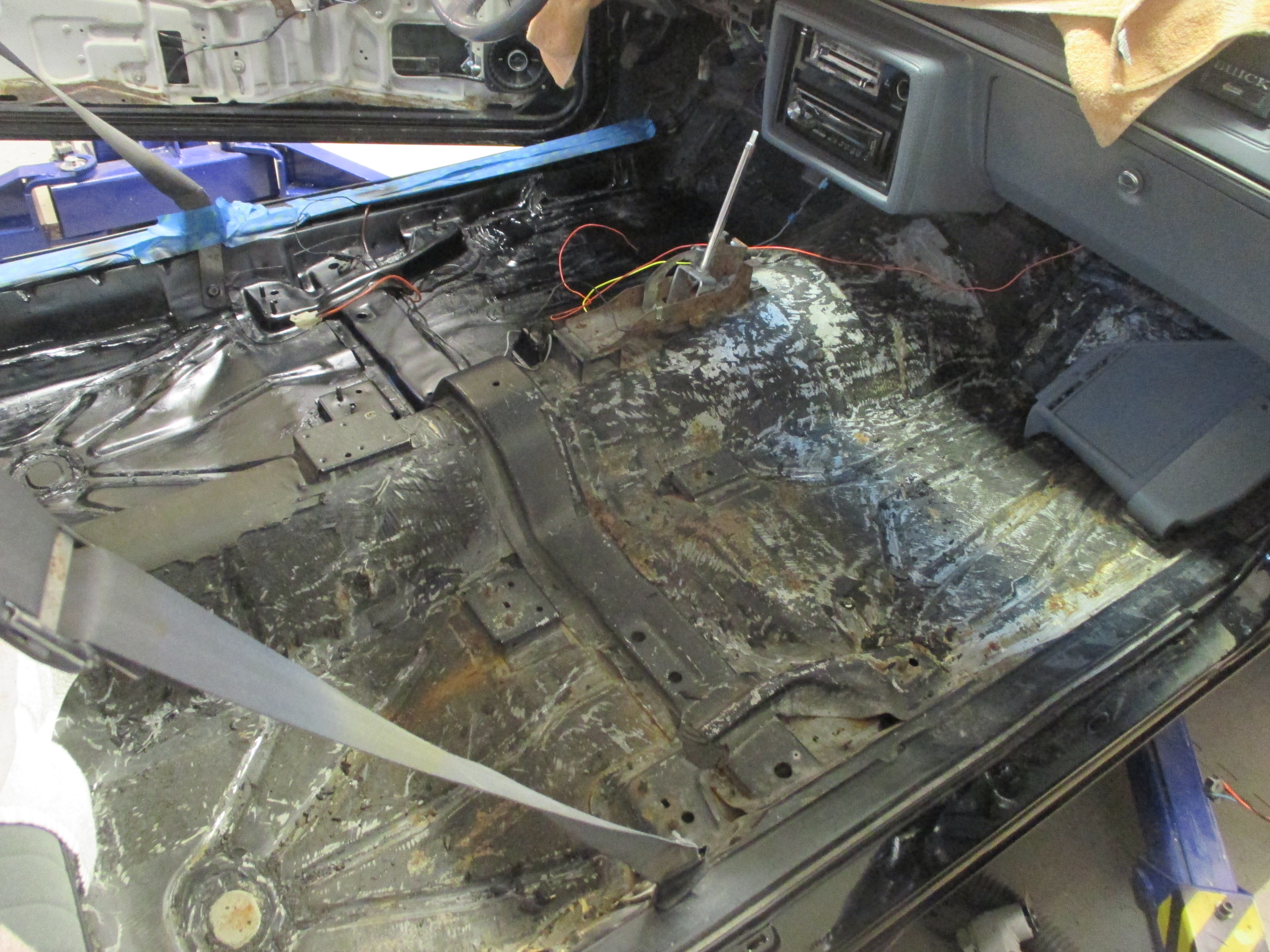 Rust was wire wheeled off and floor was painted. Then covered in top quality Dynamat